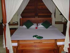 ![]() 部屋の中央に天蓋つきベッド。 おみやげのサロンはイバのとそっくり。 |