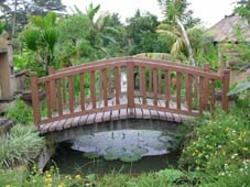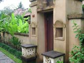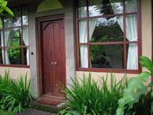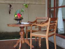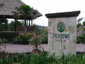 ペルティウィ・リゾート&スパはモンキーフォレスト通り、「カフェワヤン」の1軒おいた隣にあります。 まわりはカフェやブティックが並び、ウブド中を満喫できる好条件です。 入り口に近い方にペルティウィ・バンガローがあり、2階建てか3階建てで入り口やベランダには 竹製のいすがおいてあります。ここは欧米人ばかりでした。 新しくできた1戸立てのコテージはその奥にあります。 2002年1月26日、ガーデンビラに1泊、プールビラに3泊しました。 急な階段がこれでもかとあり、部屋にたどり着くのがもう大変。 夜出かけたときに1度ころびました(^^; でも夜はところどころにともした明かりがとても素敵です。 ペルティウィで1番よかったのは無料のアフタヌーンティー。 4時から5時までの間にお部屋にもってきてくれるのですが、日替わりのケーキがとっても おいしかったんです。どれもシロップがかかって程よい甘さで、また食べたい!! でも、最初は電話かかってきて教えてくれたのですが、次の日はなし。 「持ってきて」って言わないとだめみたい。それとも最初の日にチップあげなかったから? お部屋は清潔で天蓋つきのベッドも素敵です。難を言えば、塀が低いので外から中が見えちゃうかなぁ。 朝食つきだったのですが、これがまたおいしくて十分満腹になります。 ジュース、パン、卵料理は何種類かをセレクトできます。 スタッフはみんなフレンドリー。特に女性スタッフが感じよかったです。 空港までの送迎は片道$20 です。 あの魔の階段がなければ、また泊まりたいホテルです。 |