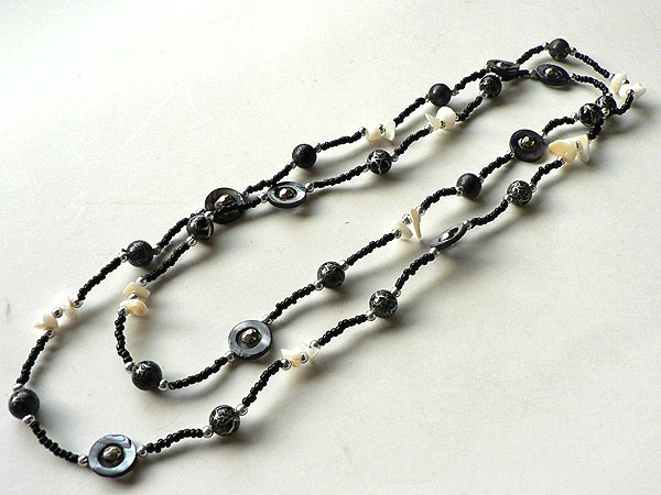 シェルとビーズのネックレス黒6142