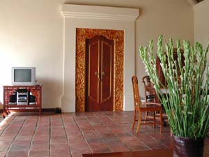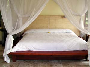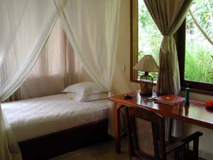 「Gayatri ガヤトリ」とは、インド語でガネーシャのこと。 ガネーシャの像があったかどうかは記憶にありません。 なにしろ入り口付近はまだまだ工事中で、通りからはこの奥にこんな すばらしいビラがあるなんて気づかないでしょう。 Amarta, Pratiwi, Sawitri の3つのビラがあり、景色が1番いいのが Amarta、 1番広いのがSawitri です。 私たちが泊まったのは1番リーズナブルな Pratiwiです。 |