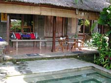 遺産という名の通り苔むした石段、石像、熱帯植物に囲まれた静かなヴィラです。