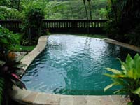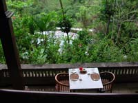 | チャンプアン渓谷に水が流れ落ちるようなメインプールです。 | プールサイドに寝そべっているととても涼しい。 | レストランからの眺めもグッド!! |